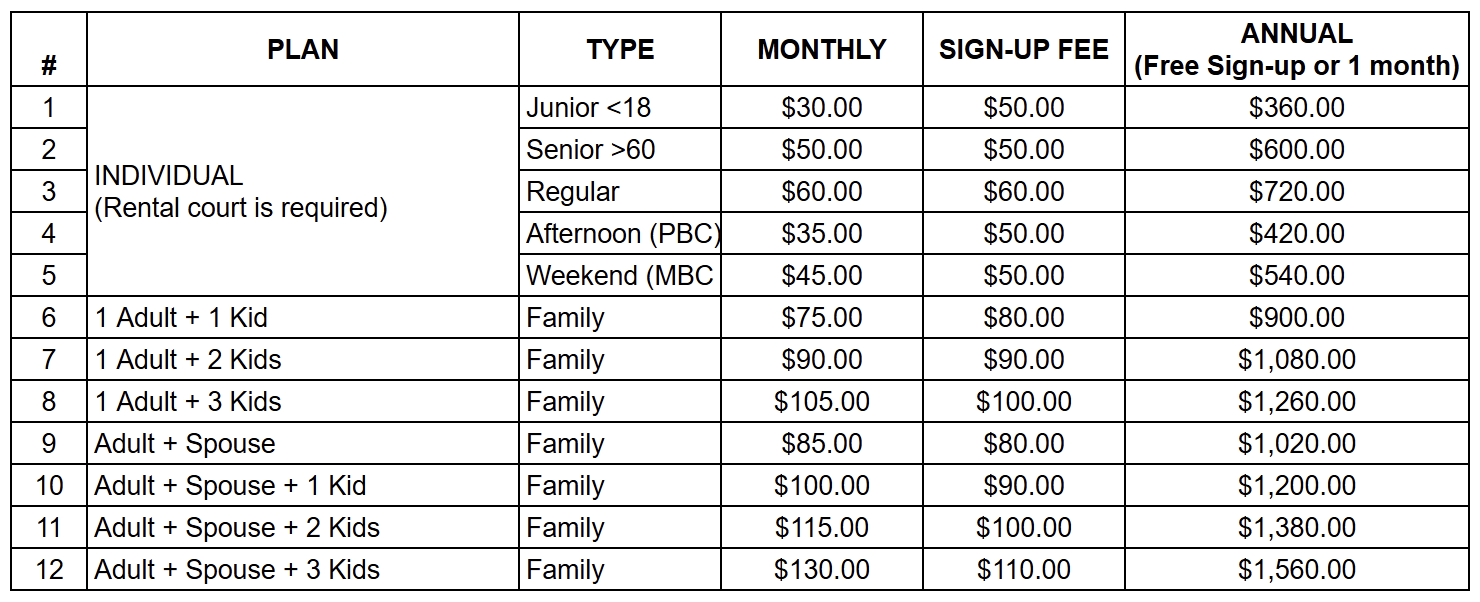 To buy a family membership, email: info@planobadmintoncenter.com