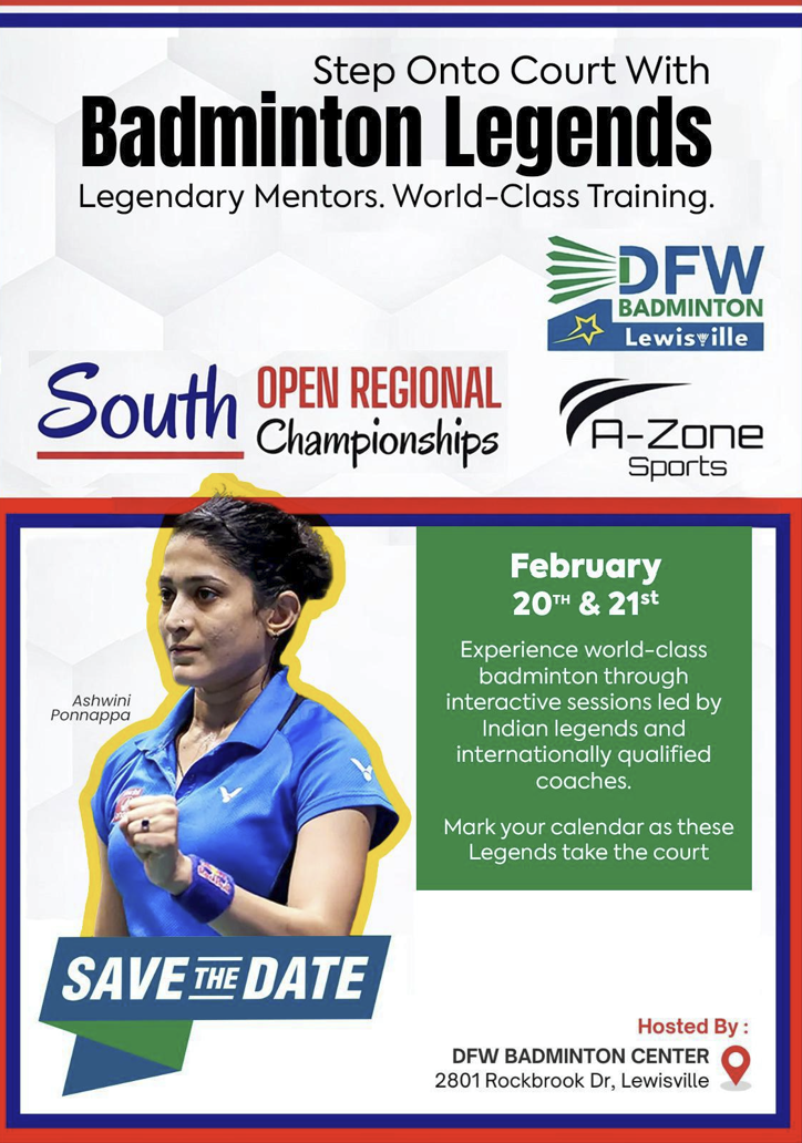 Get ready for an unforgettable February at DFW Lewisville! We are thrilled to host the legendary Ashwini Ponnappa, Indian Olympian and World Championship Medalist, for an exclusive event: βStep Onto Court With Badminton Legends.β